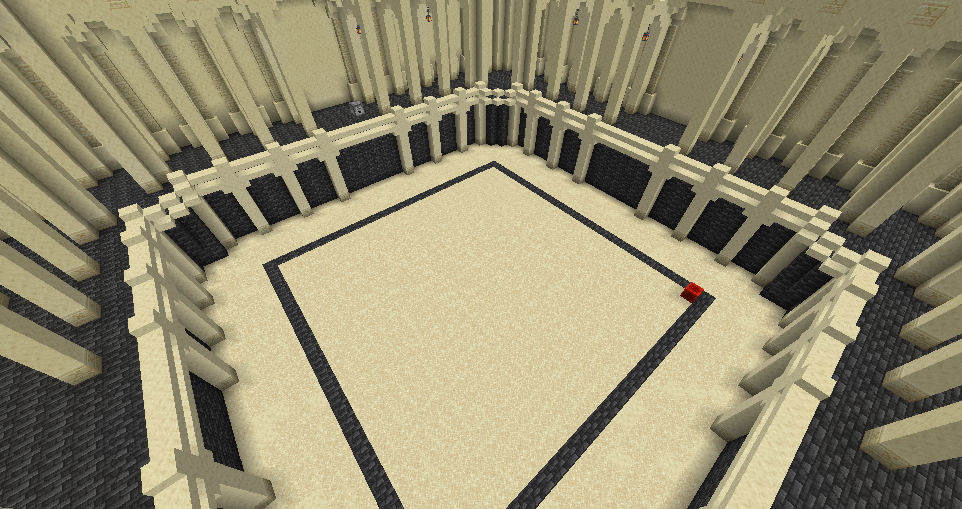 Die Spielfläche wird durch zwei <img src="https://1309253419-files.gitbook.io/~/files/v0/b/gitbook-x-prod.appspot.com/o/spaces%2Fi10PgHQTIUUm2awhkL0L%2Fuploads%2FHTtGR1Bt1hrOYRO5RUTP%2Fimage.png?alt=media&#x26;token=1e3a2172-a056-470f-9f34-c75a16294f44" alt="" data-size="line"> **Redstoneblöcke** markiert. Diese geben den Bereich an, in dem der Spieler bauen kann. Bedenke beim Markieren der Fläche, dass der 2. <img src="https://1309253419-files.gitbook.io/~/files/v0/b/gitbook-x-prod.appspot.com/o/spaces%2Fi10PgHQTIUUm2awhkL0L%2Fuploads%2FHTtGR1Bt1hrOYRO5RUTP%2Fimage.png?alt=media&#x26;token=1e3a2172-a056-470f-9f34-c75a16294f44" alt="" data-size="line"> **Redstoneblock** auch die Höhe der verfügbaren Fläche angeben muss.